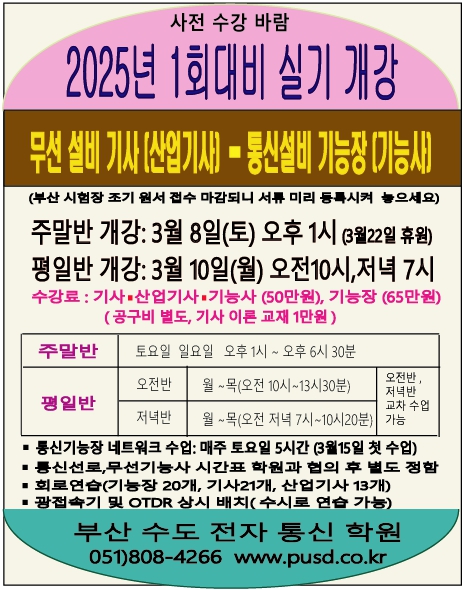 2025³â1ȸ´ëºñ ¹«¼±±â»ç(»ê¾÷), Åë½Å±â´ÉÀå ½Ç±â °³° ¾È³»
